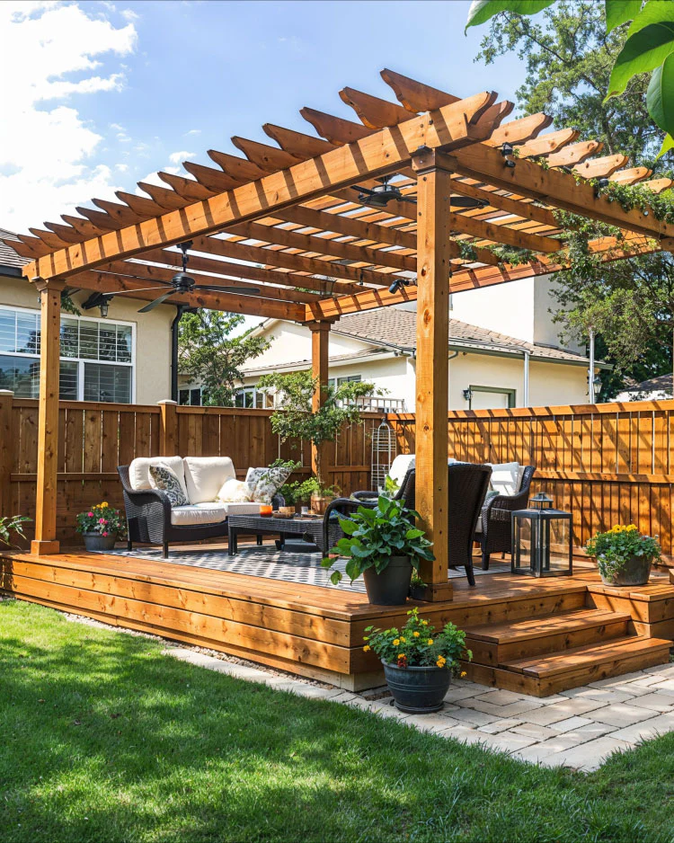 If you’re drawn to natural wood with a refined look, cedar and redwood are great choices. They are known for their rich color and natural resistance to decay, and these woods bring a warm, rustic charm to your outdoor space. Cedar and redwood are more resistant to insects and moisture than many other woods, though they’ll need occasional care to stay in top shape.